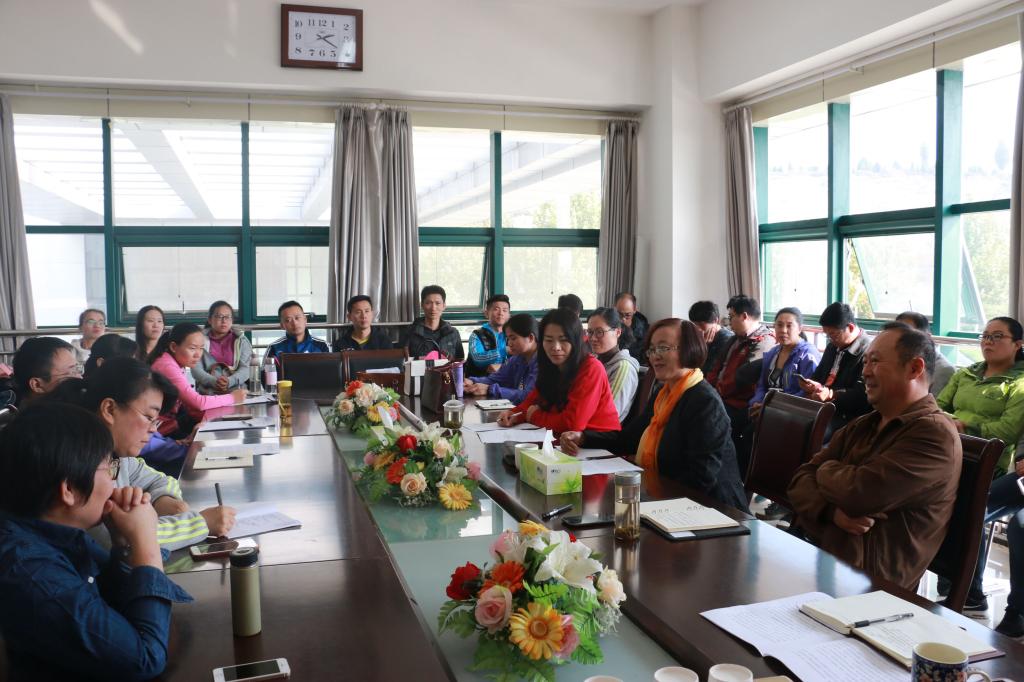 10月12日下午,基础部党总支在博雅楼A216室召开全体教职工会议,深入学习贯彻学校第二次党代会精神。学校党委副书记王淑霞出席会议并指导工作,基础部党总支书记潘建勋主持会议。