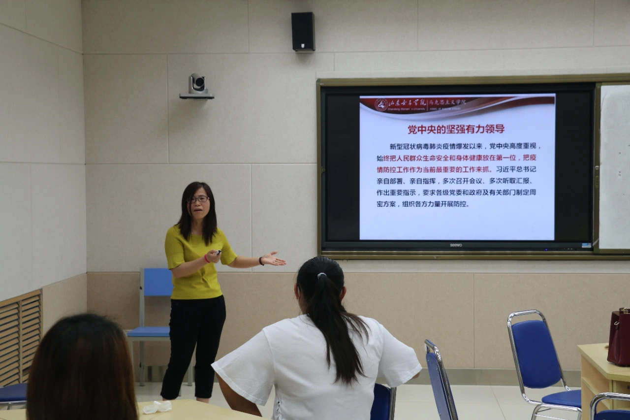 为进一步强化学校复学后新冠肺炎疫情防控工作,加强学生的爱国主义教育和思想政治引领,坚定学生理想信念,强化学生责任担当,5月28日上午,马克思主义学院黄丽萍老师为首批返校同学开讲“开学第一课”。