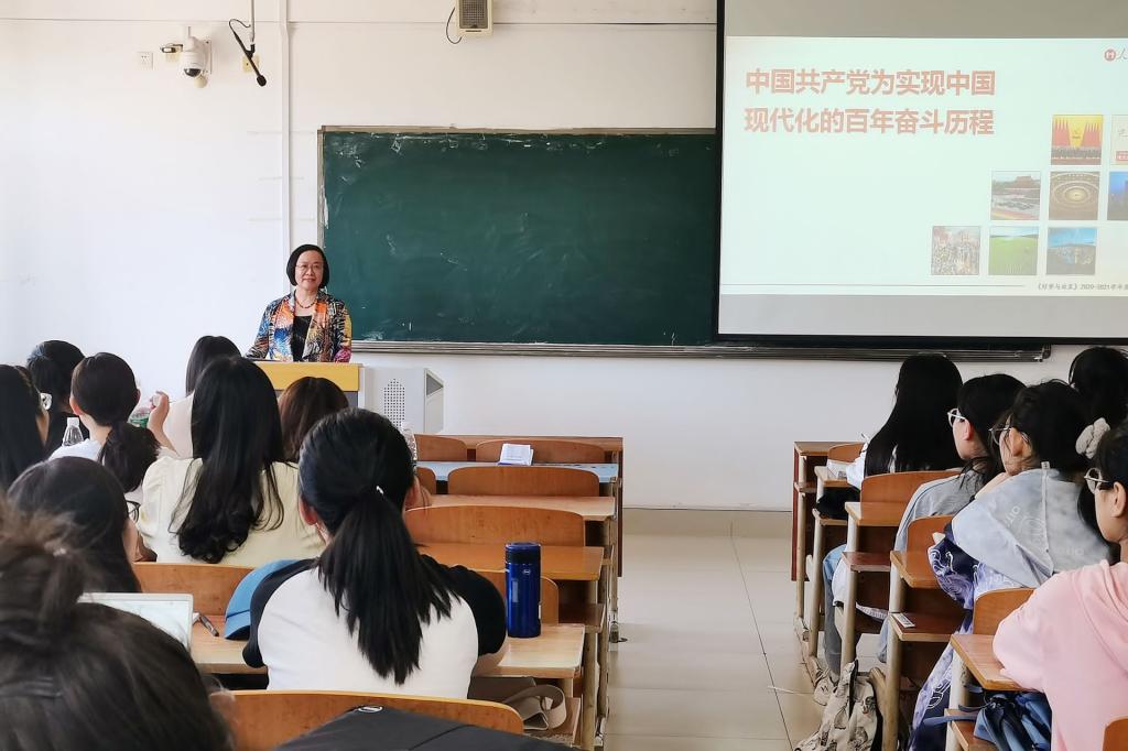 6月4日下午,学校党委副书记王淑霞以《中国共产党为实现中国现代化的百年奋斗历程》为题,在博学楼301为教育学院学生上思政课。