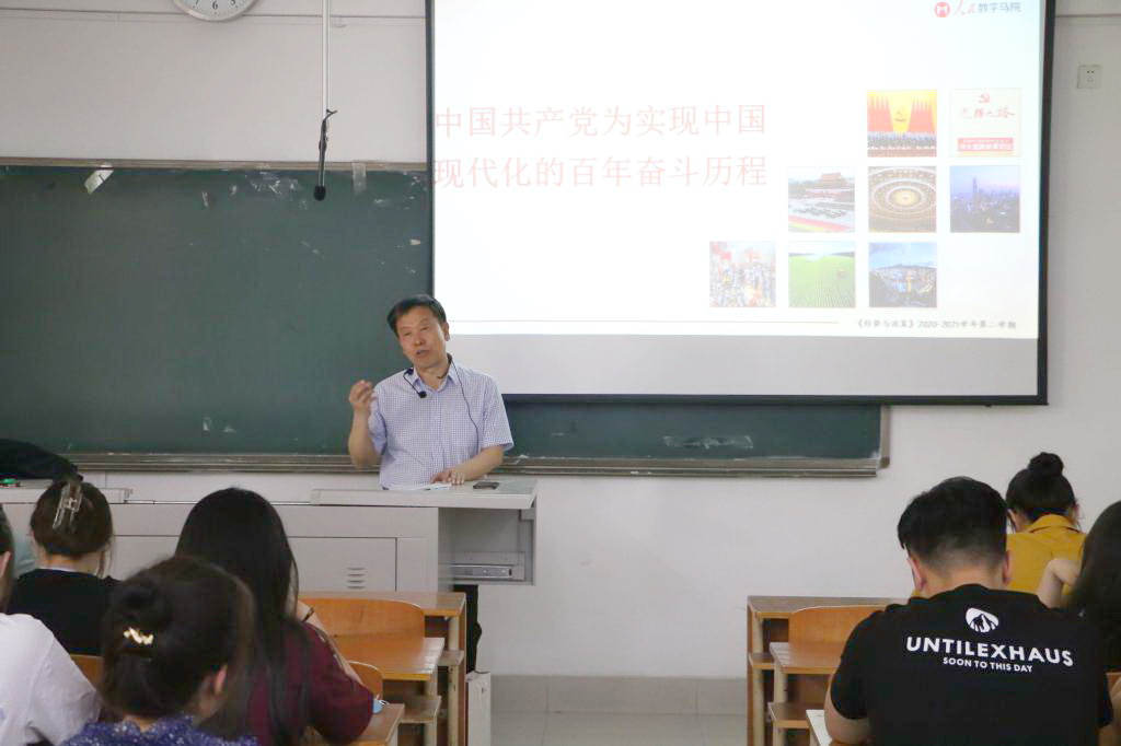 5月19日、24日,党委副书记、院长盛国军结合形势政策课“中国共产党为实现中国现代化的百年奋斗历程”专题,为2020级养老服务与管理专业等本科班学生讲授思政课。盛国军从历史、逻辑的维度诠释了中国从传统到现代转型过程中中国共产党不屈不挠的百年艰辛探索,在从站起来、富起来、强起来的过程中带领中国人民克服困难、纠正错误、不断走向强大的历程。盛国军鼓励同学们,认真学习并掌握马克思主义的基本立场、观点,听党话跟党走,在实现中华民族伟大复兴的生动实践中放飞自己的青春梦想。