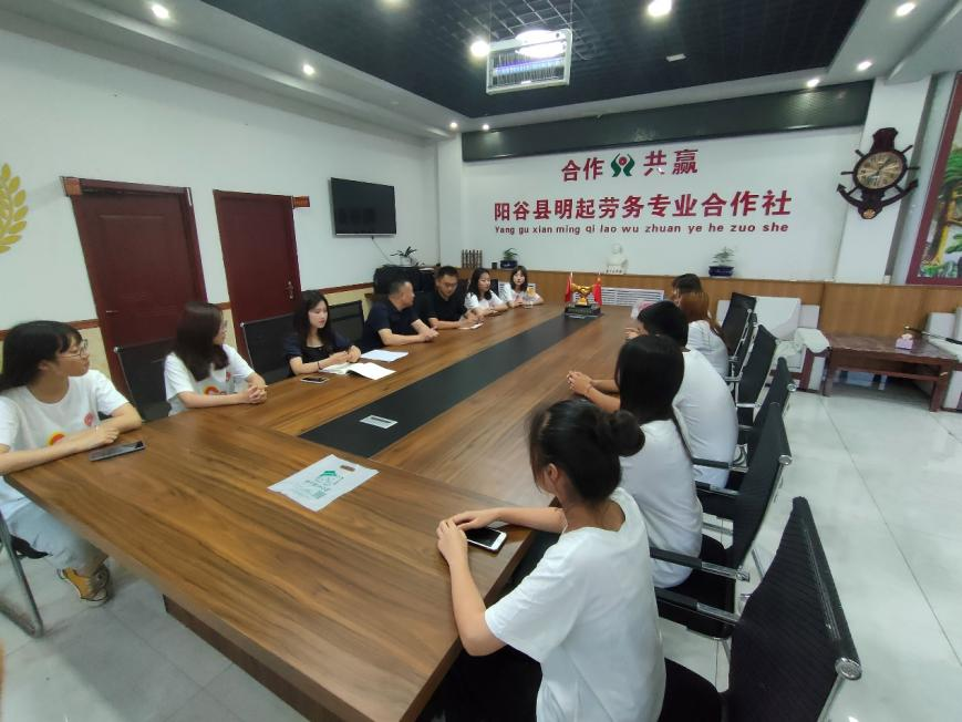 山东女子学院马克思主义学院“美丽乡村思政服务实践队”于7月20日在刘铺村明起劳务专业合作社举行总结交流会。刘铺村党支部书记张明宝,服务实践队驻点老师及全体成员参与了本次交流会。