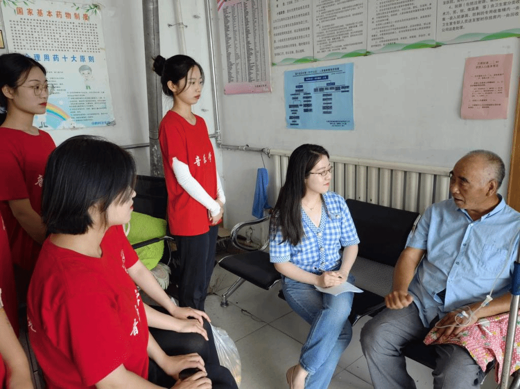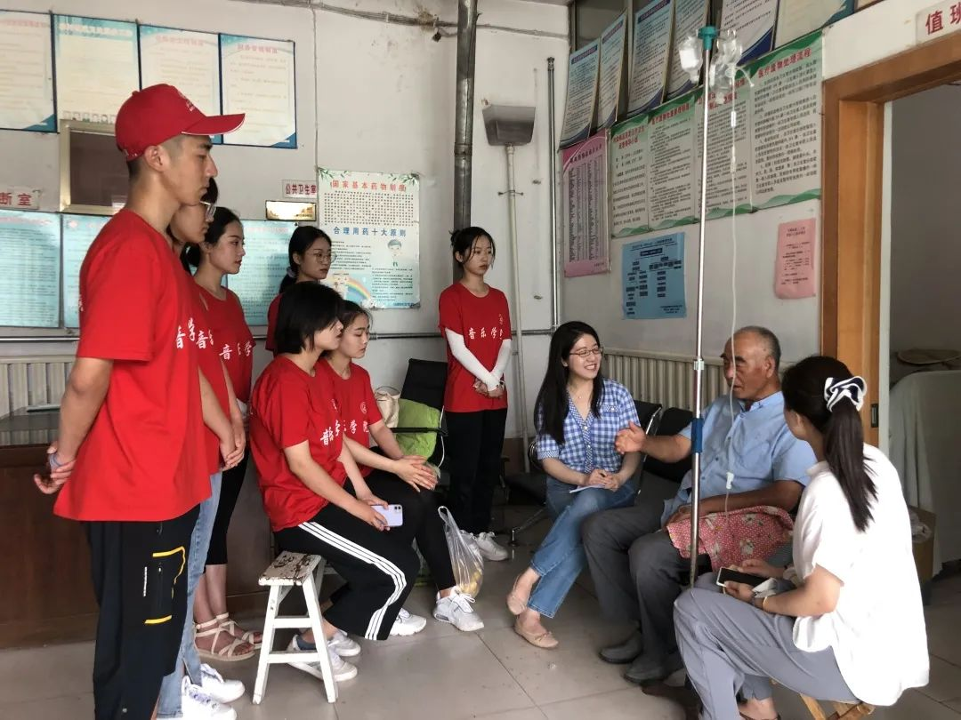 7月16日上午,音乐学院“音为梦想”社会实践服务队在马克思主义学院王泽琳老师和音乐学院辅导员李梅华老师的带领下,探访了马套村53年党龄的老党员孙士水同志,由于身体不适孙爷爷正在在村卫生室输液,得知了大家来意之后孙爷爷表示非常高兴和欢迎。
