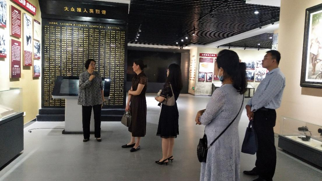 大众日报社报史馆长于岸青和集团办公室对我院教师代表的到来表示热烈欢迎。于馆长首先带领我院教师参观了报史馆,详细介绍了展馆中重大新闻报道、关键历史事件。一幅幅新闻照片展示着往日的革命辉煌,一件件珍贵的实物资料承载着厚重的红色记忆,一幕幕艰苦卓绝的历史画卷叙说着新闻人的荣耀与自豪。老师们认真聆听于馆长的讲解,并就山东妇女运动的发展问题同于馆长进行了深入交流。