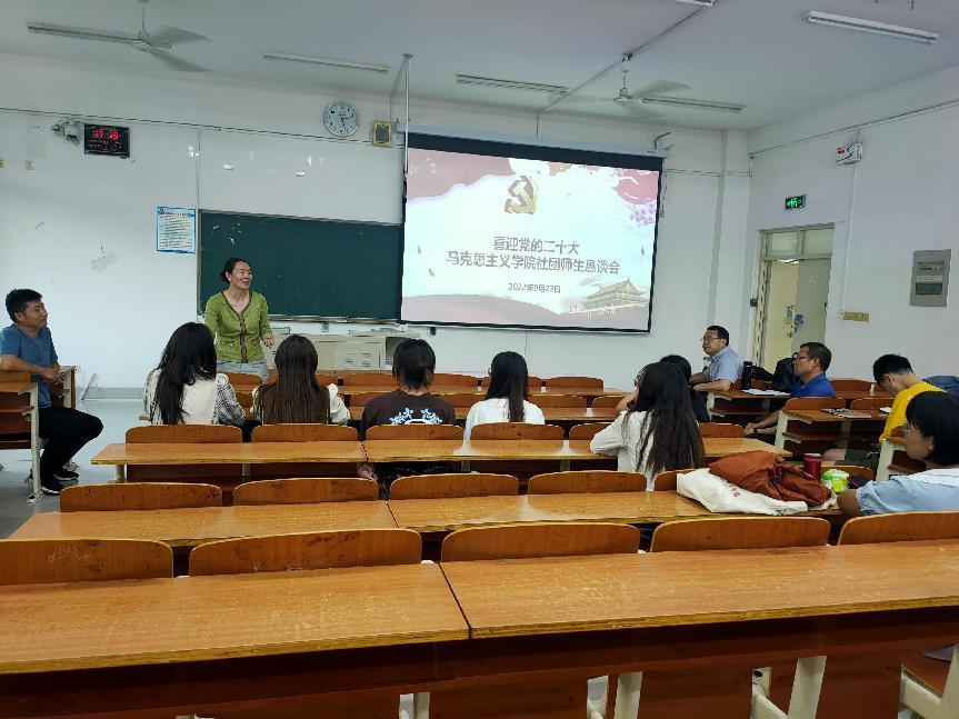 图为“喜迎党的二十大马克思主义学院社团师生恳谈会”活动现场