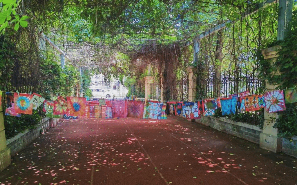 小朋友们充分发挥自己的艺术个性,在纯白的布料上浸染颜色。色彩相间的图案中,展露了对生活之美的创造,也是一份民间非遗工艺的传承。染料在小朋友们的手中尽情地在染布上舞动,待染色完成后进行拆线晾晒。打开布块的刹那,一幅幅各具特色的作品映入眼帘。色彩丰富,变化自然,趣味无穷。小朋友们描绘出了一件件独具风韵的扎染作品。