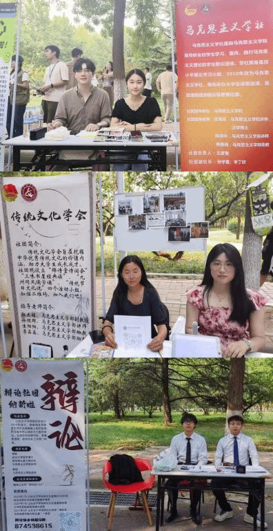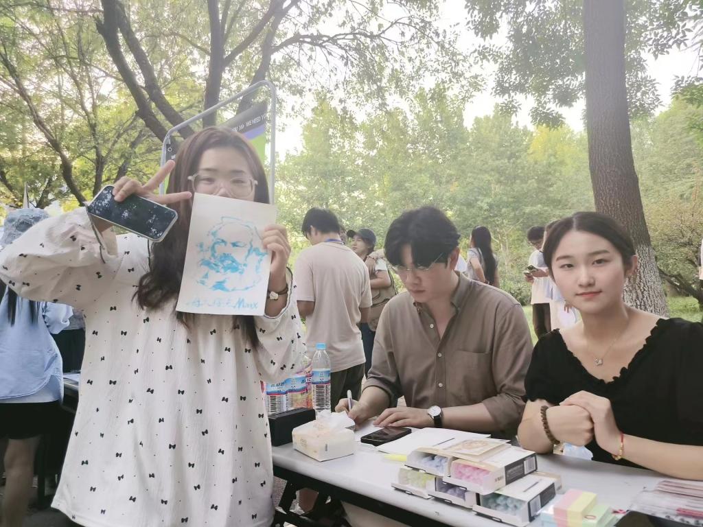 马克思主义学社作为我校办社时间最长、历史底蕴最为丰厚的学生社团之一,在纳新活动的入场处挺膺展风,通过红色文化题海报立体式述说社团历史,社团指导教师亲自到场,为入社新生精心绘制马克思肖像,题写青春寄语,分享学习感悟。传统文化学会传承古风古韵,骨干成员身着汉服,齐诵古文,全方位展示中华传统服饰和礼仪之美,大力弘扬中华优秀传统文化。辩论协会的成员们精心设置辩题,现场邀请新生沉浸体验剑拔弩张的辩论现场,正反双方口若悬河、舌灿莲花,献上了一场场让人拍案叫绝的思维碰撞。马克思主义学社新加入的一名大一新生表示,自己在中学阶段就由衷信仰马克思主义,热爱红色文化,今天参加了学社的纳新活动,不但收获了老师绘制的马克思肖像,更通过与老师学姐们的深入交流,得到了一次精神的洗礼,对未来的社团活动更加充满期待。