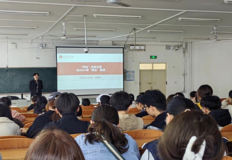 焦路尧老师从两会的历史沿革、2024年两会关键词解读和2024年政府工作报告亮点解读等三个方面展开论述,系统回顾了全国人民代表大会和中国人民政治协商会议从历史上一前一后开展到实现同步,再到制度化、规范化日趋成熟的沿革历程;立足2024年关键之年的定位,结合一系列同学们感兴趣的社会热点事件,深入浅出地解读了“新质生产力”、“全面深化改革”、“文化传承与发展”三大关键词的时代意涵;最后围绕2024年政府工作报告,锚定与大学生成长成才紧密联系的亮点内容,就我国在民生、就业、教育等方面的新成就、新目标和新举措开展讲解。