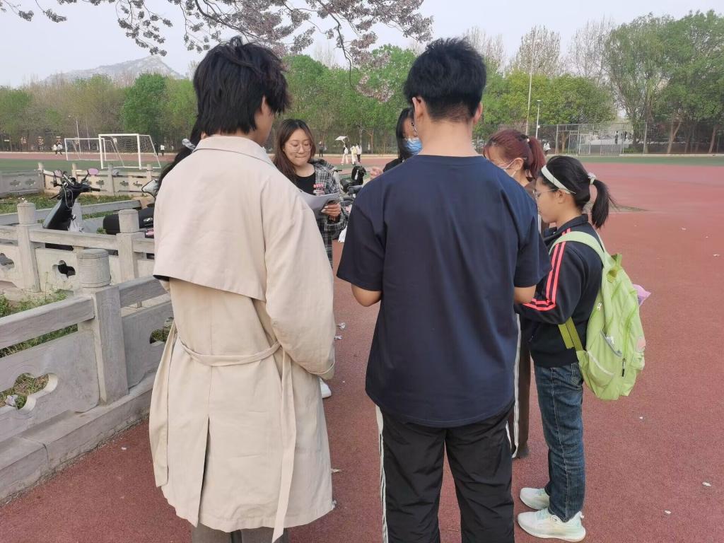 夕阳的余辉洒满校园,整个的绿茵场好像披上了金色的地毯。操场南侧的唐槐树下,大家围站在一起,活动参与者依次讲述了清明节来历故事、烟台海阳红色故事、菏泽郓城红色故事、济南战役、孟良崮战役、胶东红色乳娘等红色故事。每一个英勇的故事,都承载着一段悲壮的历史,从中大家都感受了新中国成长壮大的曲折历程,也体会到了中国人民前赴后继英勇抗争的热血豪情。