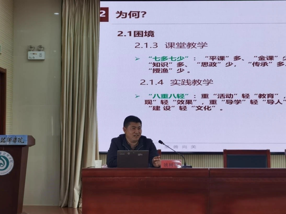 4月9日下午,马克思主义学院院长、红心讲师团成员姚树欣应邀前往山东医药技师学院,以《新时代高校课程思政建设几点思考》为题作专题报告。山东医药技师学院各教学部门负责人及全体教师到场聆听。