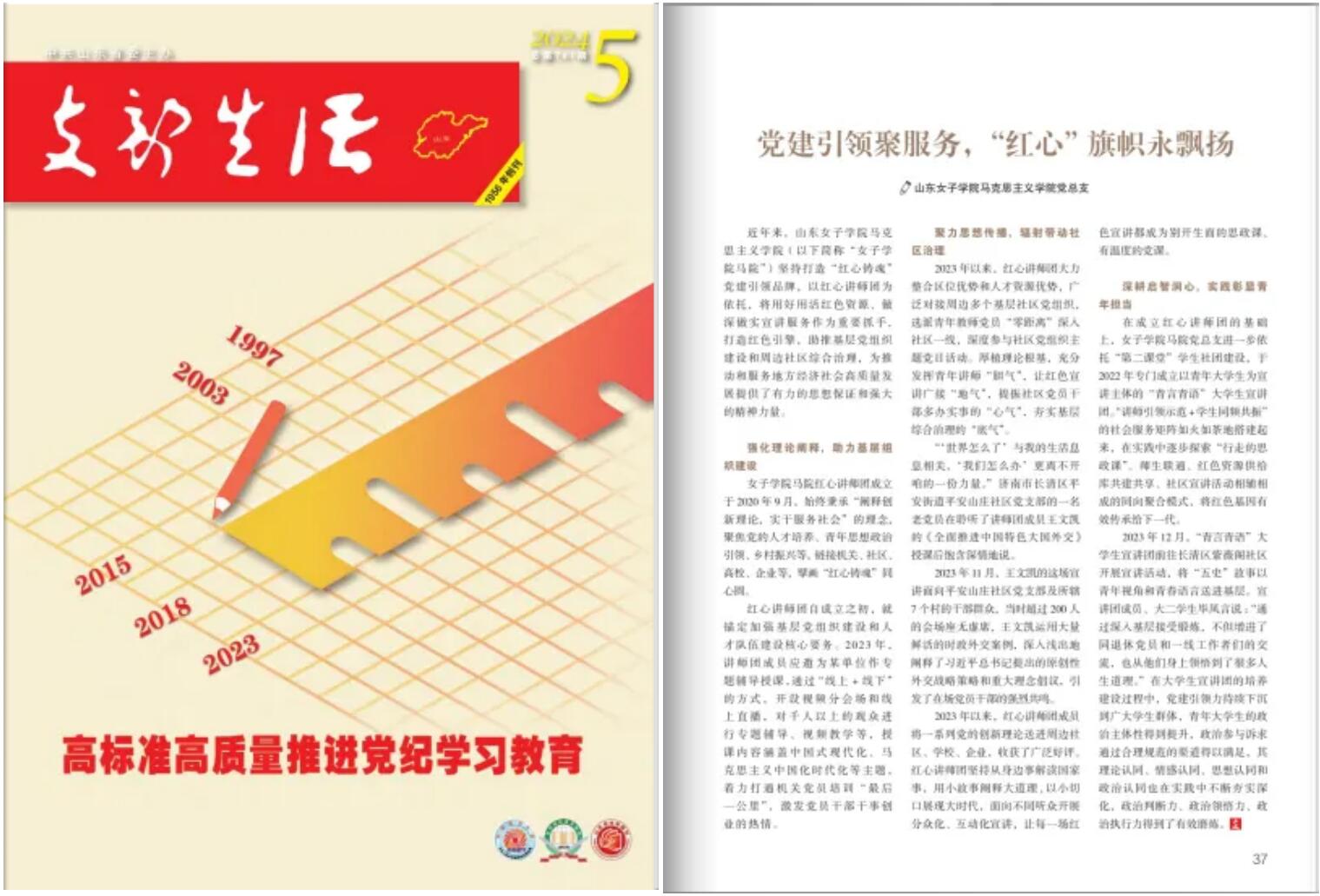 日前,《支部生活》2024年第5期刊发学校马克思主义学院党总支党建工作典型经验《党建引领“聚”服务,红心旗帜永飘扬》。全文如下: