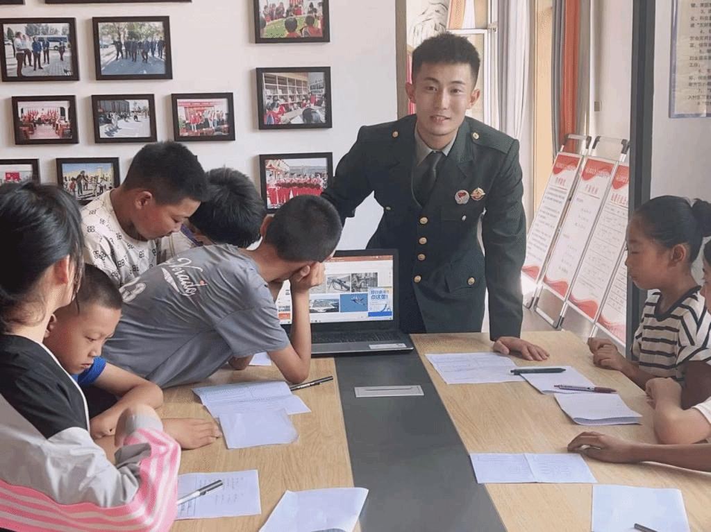 在授课中,安不渝通过介绍自己参军入伍经历,讲解海陆空三军的基本构成和人民军队的发展历程,利用孩子们已知的军事知识与孩子们展开充分交流,循序渐进地使他们正确认识“强国必须强军,军强才能国安 ”的道理,从而厚植爱国之情,志于报国之行。