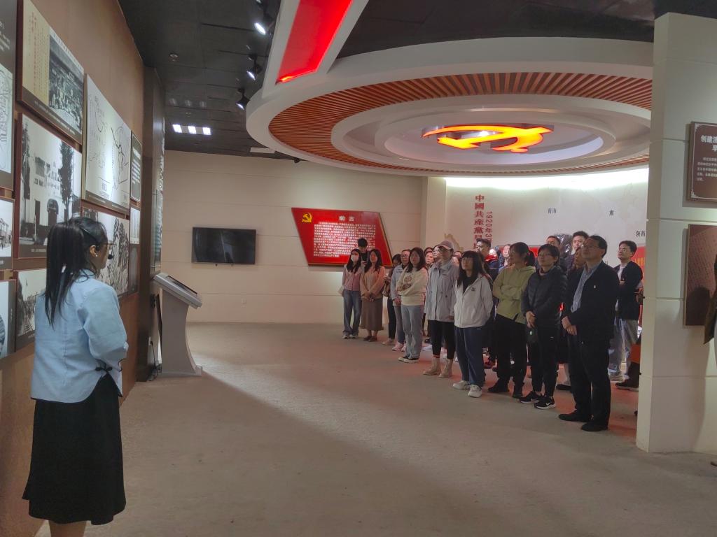 为推进“一融双高”,打造红色文化铸魂育人高地,10月24日下午,马克思主义学院党总支组织全体党员前往《泉城之光——王尽美与中国共产党创建史》展陈馆开展参观学习活动。《泉城之光——王尽美与中国共产党创建史》展陈馆坐落在济南幼儿师范高等专科学校校园内,陈列了王尽美同志革命斗争的史料、图片,以及关于烈士的回忆文章与文艺作品等红色文化史料。