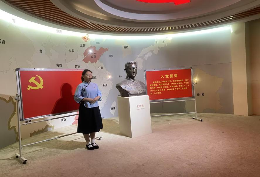 展陈馆讲解员向全体党员介绍了王尽美同志在山东省省立第一师范(济南幼儿师范高等专科学校的前身)的学习和参加革命的情况,以及他作为中国共产党的创始人之一组织和领导中国共产党早期革命运动的情况。王尽美同志直到生命的最后一刻,还在叮嘱“全体同志要好好工作,为无产阶级和全人类的解放和共产主义的彻底实现而奋斗到底!”,他用自己短暂的生命书写了人生的辉煌,留下了一笔内涵丰富、极具时代价值的精神遗产。
