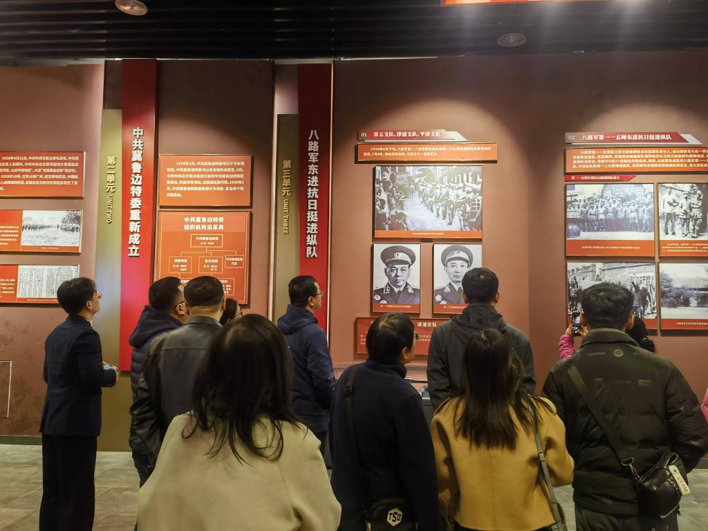 冀鲁边区形成于1937年,是抗战初期形成的山东六大战略区之一,是山东抗战的“先行区”。冀鲁边区抗日根据地是中国共产党领导下的山东第一个抗日革命根据地,发生于此的冀鲁边抗日武装起义,亦是全面抗战爆发后党领导的第一次抗日武装起义,冀鲁边革命根据地不仅在山东革命根据地史上占有重要地位,而且在中国革命史上留下了光辉篇章。聆听着讲解员的动情解说,注视着陈列的诸多纪实性展品,全体党员耳濡目染地重温了那段硝烟弥漫、波澜壮阔的峥嵘岁月。正是冀鲁边区人民群众与革命英雄的奋勇厮杀和浴血坚守,在助力抗日救亡取得完成全胜利的同时,也缔造了冀鲁边人“敢为人先、大爱为国、不屈不挠、团结奉献”的革命精神。