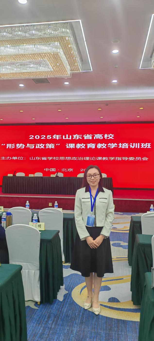 2025年4月26日—27日,山东省高校“形势与政策”课教育教学培训班在北京举办。此次培训班旨在进一步提升高校“形势与政策”课教师的理论素养和教学水平,深入推动课程教育教学改革创新,吸引了来自山东省多所高校的教师代表积极参与。学院高度重视此次培训机会,选派教师积极参加,力求通过学习交流,为学院“形势与政策”课程建设和教学质量提升注入新动力。