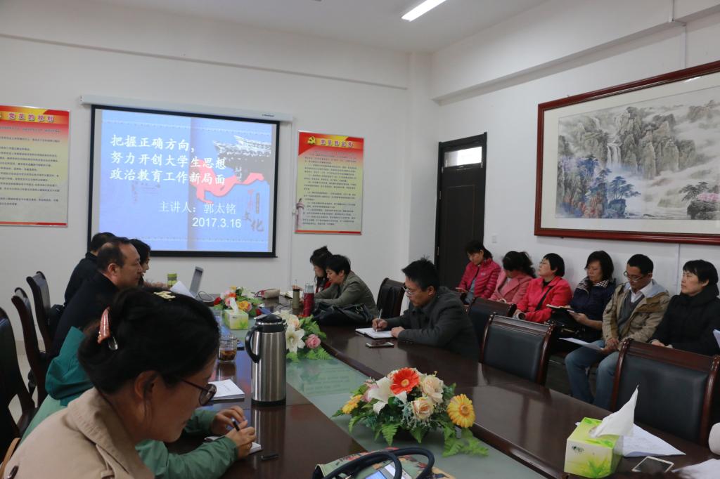 3月16日下午,基础部在博雅楼A216会议室组织开展全国高校思想政治工作会议精神学习活动,本次活动由基础部党总支书记潘建勋主持,基础部全体教师参加。