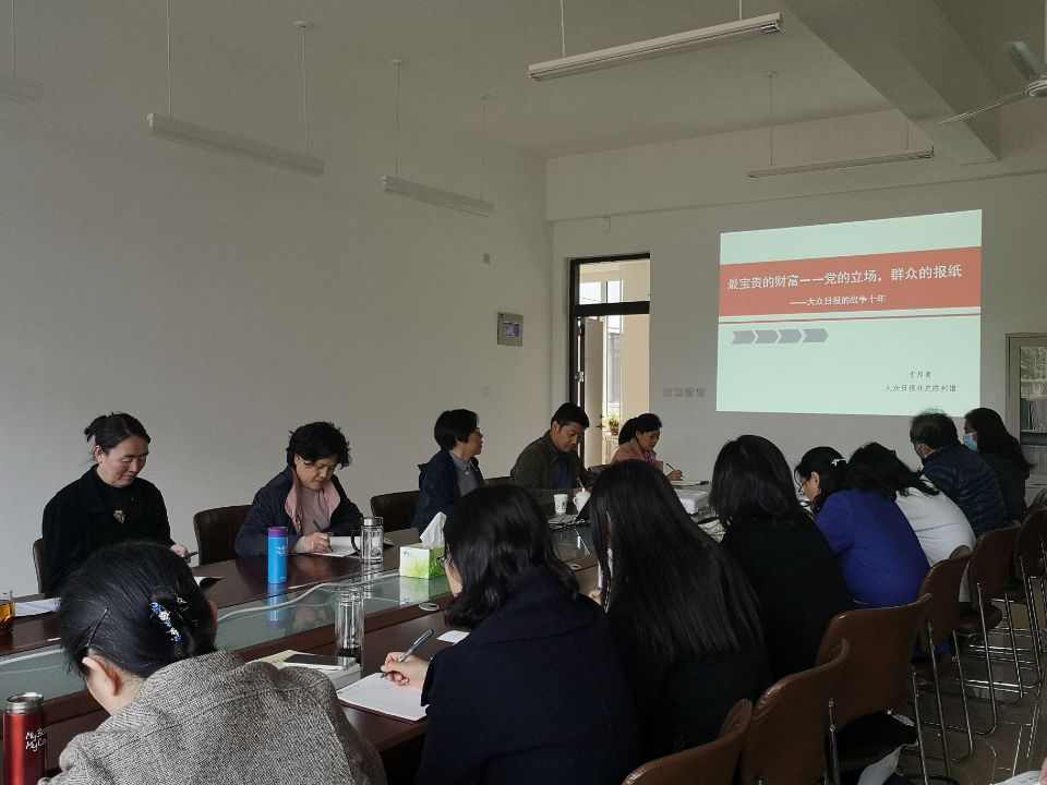 为深入学习贯彻习近平总书记在党史学习教育动员大会重要讲话精神,4月8日,马克思主义学院邀请大众日报社社史陈列馆馆长于岸青作了题为《最宝贵的财富——党的立场,群众的报纸》的专题报告。