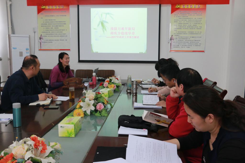 在学习过程中,马列教研室石荣菊老师以《排除万难开新局蹄疾步稳续华章》为题,从2016年工作回顾、2017年工作总体部署及2017年重点工作任务三个方面详细解读了李克强总理所做的《2017年政府工作报告》。石老师的解读思路清晰、深入浅出,受到了与会教师的好评。大家纷纷表示,李克强总理的政府工作报告亮点颇多,回顾过去一年的工作,党和政府所交出的“中国答案”令人振奋;展望未来,第一个百年目标指日可待,令人信心满怀。