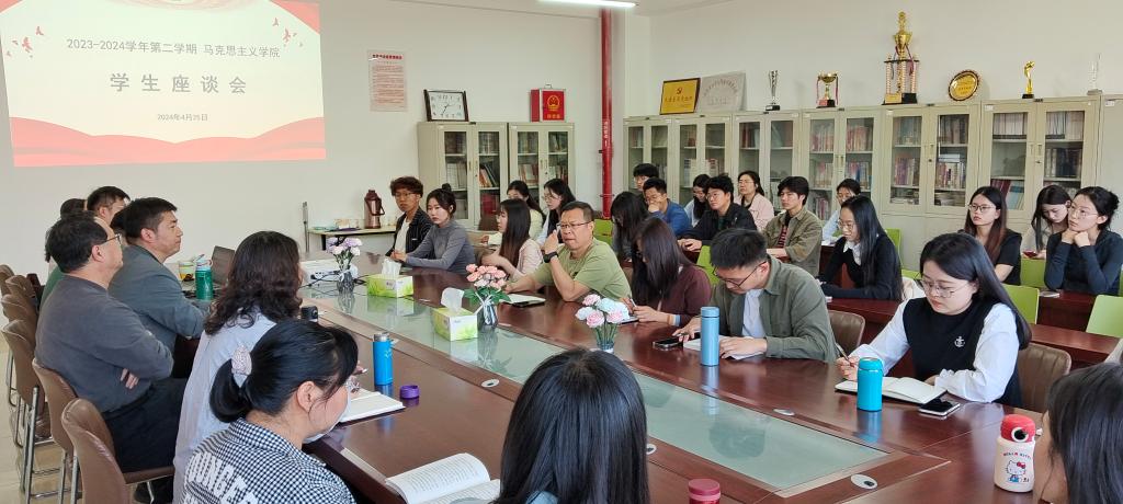 为进一步发挥思政课立德树人作用,提升教学质量,落实学校期中教学检查的通知要求,马克思主义学院于2024年4月25日下午在求真楼217召开学生座谈会。本次会由各个学院2022级、2023级本专科生共23名同学参加,学院书记、院长、副院长、教学秘书、全体教研室主任和副主任参会。会议由分管教学的副院长石荣菊主持。