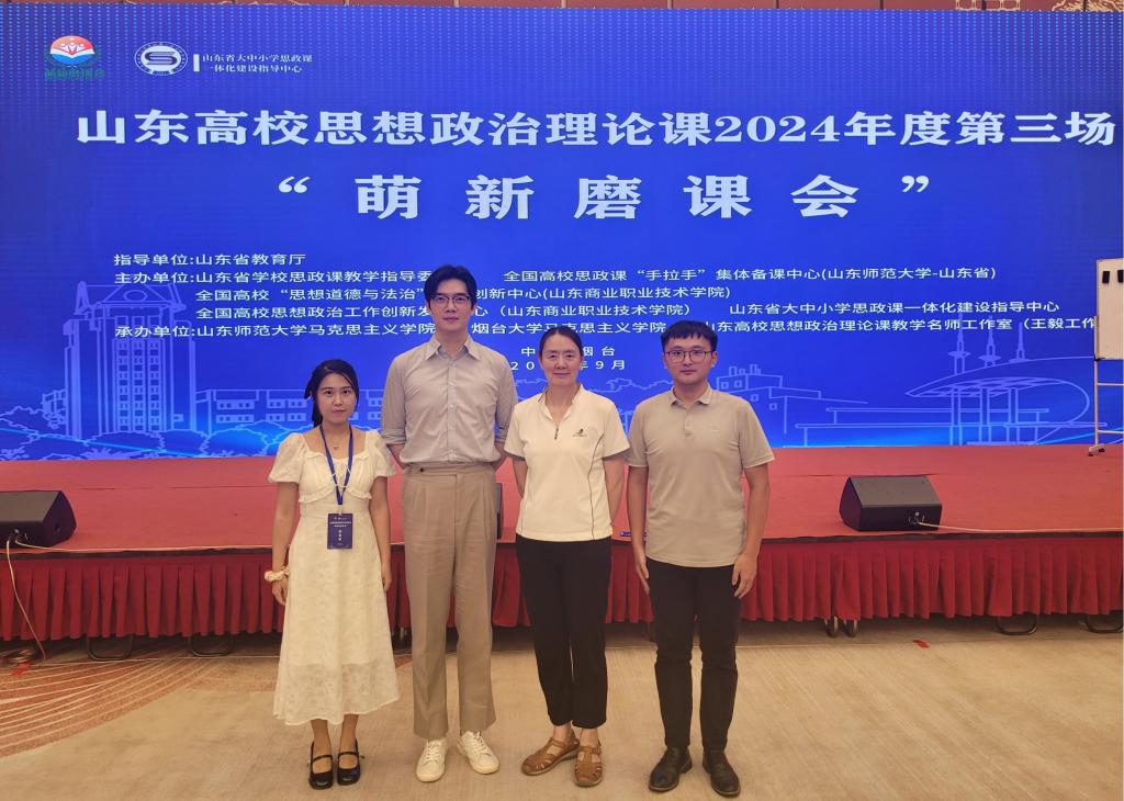 9月8日,山东高校思想政治理论课2024年度第三场“萌新磨课会”在烟台召开。此次活动由山东省教育厅指导,山东师范大学马克思主义学院及烟台大学马克思主义学院共同承办,旨在提升全省高校青年思政课教师的政治素养和业务能力,推动思政课教育教学创新发展,加强教师之间的交流与合作。我院青年思政课教师焦路尧作为入围选手进行了现场展示,3名思政课教师参加本次活动。