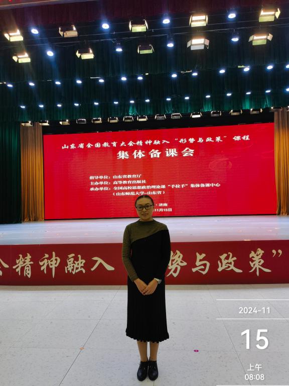 2024年11月15日,山东省全国教育大会精神融入“形势与政策”课程集体备课会在山东师范大学召开,山东女子学院马克思主义学院教师积极参与此次会议。