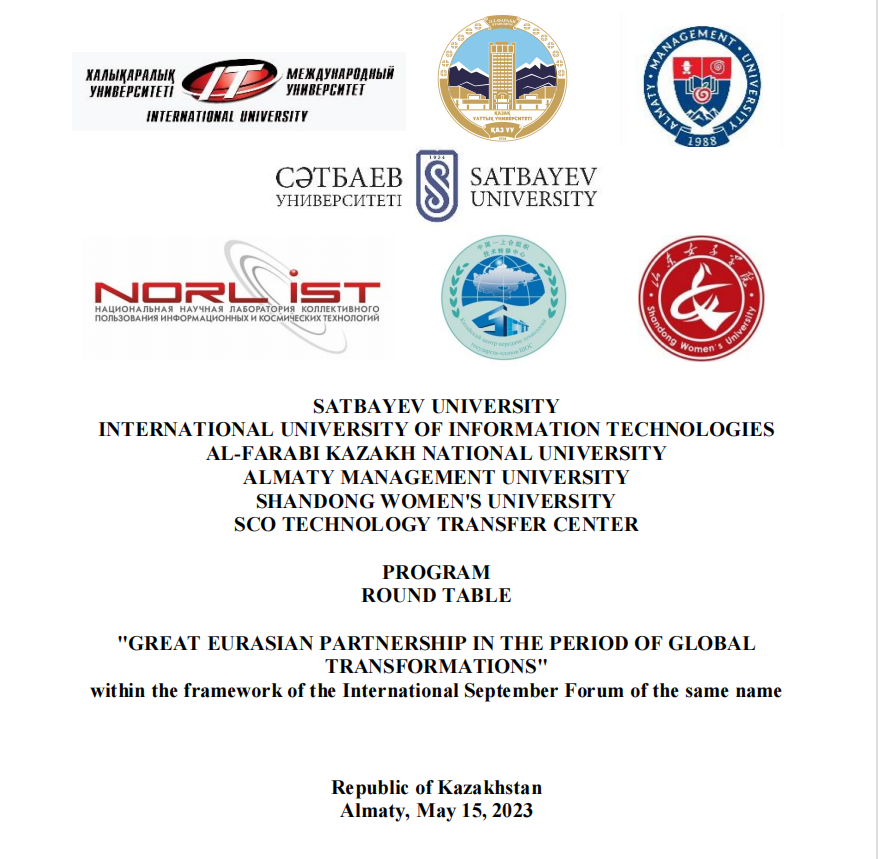 5月15日,由萨特巴耶夫大学、阿拉木图管理大学、国际信息技术大学、哈萨克斯坦国立阿里法拉比大学主办,山东女子学院和上合组织技术转让中心协办的“全球转型时期的大欧亚伙伴关系”学术论坛通过线上与线下相结合的方式举行,来自俄罗斯科学院安全问题研究中心、伊朗德黑兰大学、俄罗斯人民友谊大学、复旦大学、哈萨克斯坦驻俄罗斯使馆等机构的专家学者以及师生参与交流,其中我校马克思主义学院王宗涛和徐理群博士受邀参加了此次学术论坛。开幕式由阿拉木图管理大学政治与法学院的政治研究中心主任Saari·Borisovich 教授主持,并致词。我院王宗涛和徐理群博士分别做了《中国与中亚国家合作——共同警惕“债务陷阱论”》和《“一带一路”倡议下的中哈经贸合作:交流与前景》主题报告。