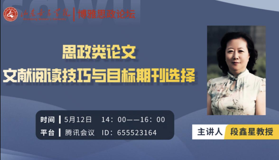5月12日下午,马克思主义学院举办第六期博雅思政论坛,邀请中国矿业大学公共管理学院教授、思政博士生导师段鑫星教授作题为《思政类论文文献阅读技巧与目标期刊选择》的线上专题报告。本次报告由马院李黎明教授主持,学院全体教师参加。
