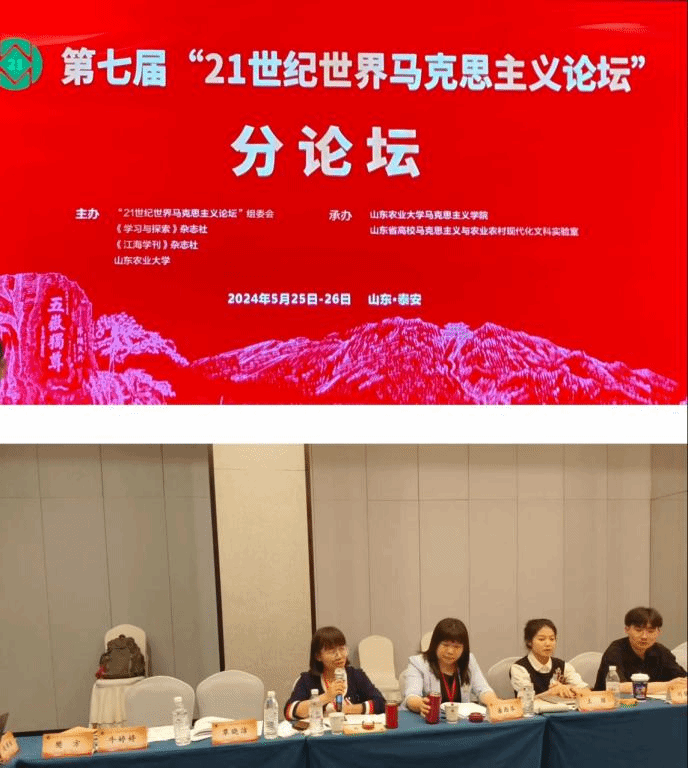 5月24-26日,由21世纪世界马克思主义论坛组委会、《学习与探索》杂志社、《江海学刊》杂志社、山东农业大学主办,山东农业大学马克思主义学院、山东省高校马克思主义与农业农村现代化文科实验室承办的第七届“21世纪世界马克思主义论坛”在泰安举办。我院青年教师崔雪莲博士参加了此次论坛。