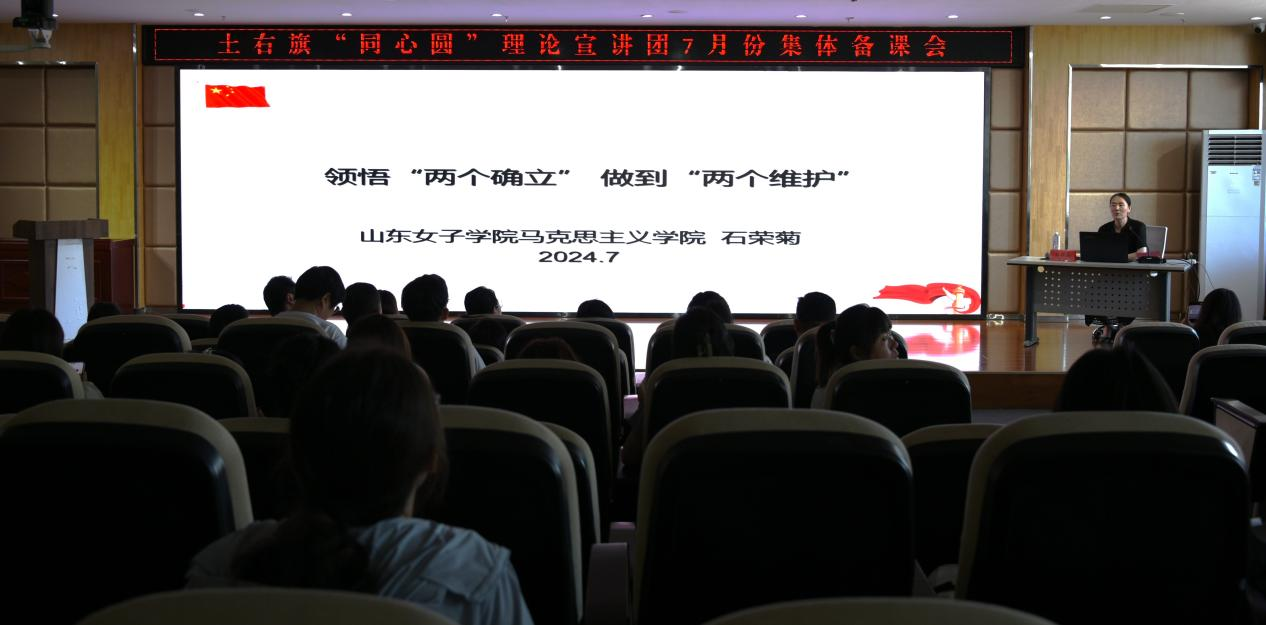 7月26日上午,山东女子学院马克思主义学院“行走的思政课”社会实践队领队石荣菊受邀为中共土右旗委宣传部“同心圆”理论宣讲团集体备课会作理论宣讲示范课。备课会由土右旗新时代文明实践服务中心主任耿慧玉主持。