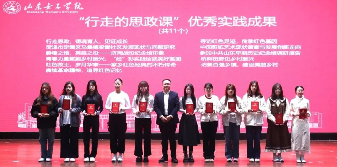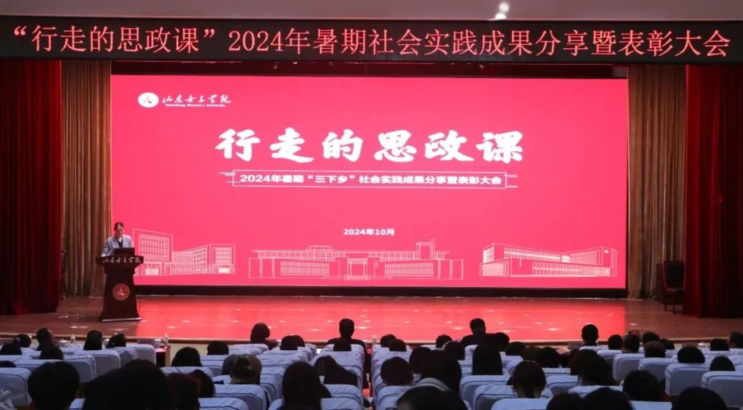 10月24日下午,“行走的思政课”山东女子学院2024年暑期社会实践成果分享暨表彰大会在学校图书馆二楼报告厅成功举行。学校党委副书记龙希利出席并讲话,学院班子成员及思政课教师代表参加。组织部、宣传部、统战部、学生工作部(处)、团委、教务处、招生就业处、创新创业学院、继续教育学院相关负责人,各学院学工办主任、团总支书记,暑期“三下乡”社会实践团队以及新生代表共同参会。
